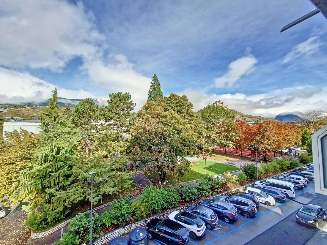 Ce charmant appartement de 3,5 pièces se situe au 3ème étage de l’immeuble « Les Dix », à la rue Chanoine Berchtold 10 à Sion.