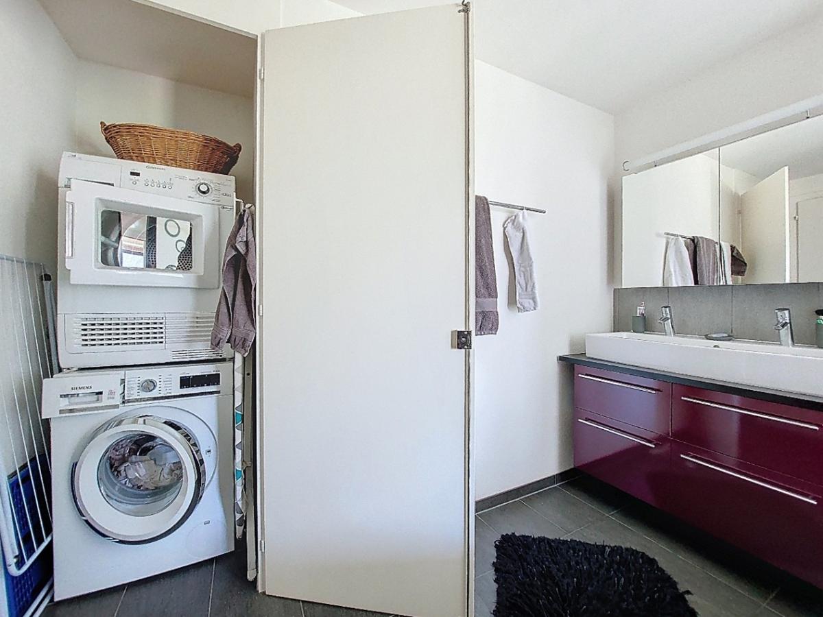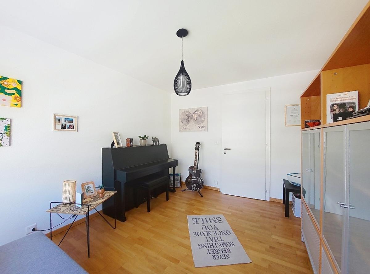 Dès l’entrée, la luminosité et la vue dégagée sur l’environnement verdoyant apportent une véritable sensation d’espace. Orienté sud/ouest/nord et doté de grandes baies vitrées, le séjour se distingue par ses volumes généreux et sa conception originale. Cet espace de vie, baigné de lumière, s’ouvre sur un balcon agréable, parfait pour profiter de l’extérieur. Le hall d’entrée, fonctionnel avec ses rangements intégrés, dessert l’espace nuit qui comprend trois chambres confortables ainsi que deux salles d’eau, l’une avec douche et l’autre avec une baignoire.