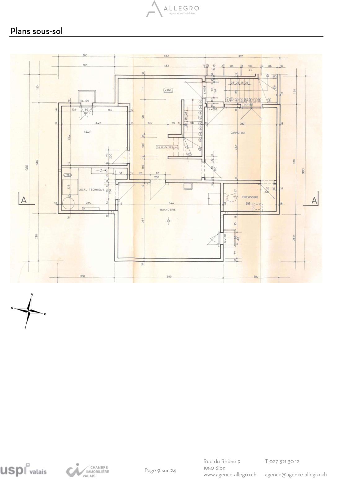 Le volume du bien est intéressant avec 790 m3 bâtis, selon la norme SIA 416, sur 240 m2 de surface brute habitable. Le chalet est organisé de la manière suivante, en considérant les surfaces habitables nettes (=balayables) :