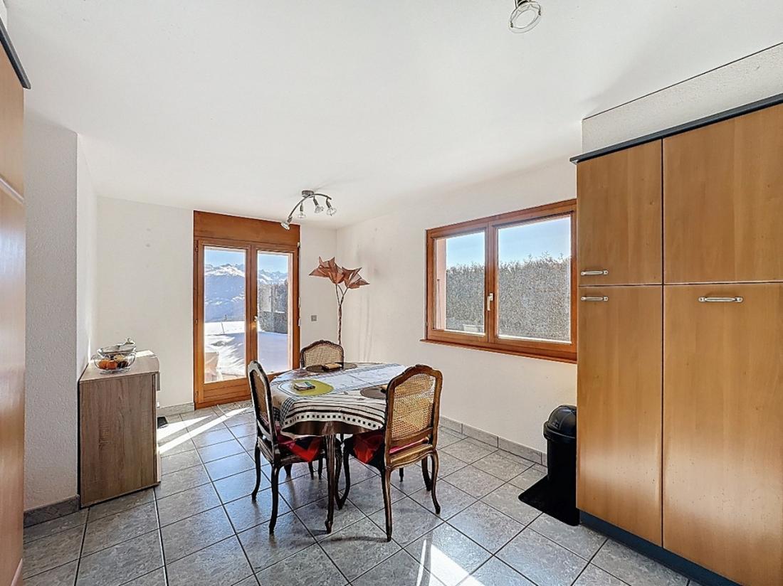 Soigneusement entretenu, ce chalet ne nécessite aucune rénovation, bien qu’il puisse aisément être remis au goût du jour selon les envies des futurs propriétaires. Bénéficiant d’un ensoleillement optimal, il séduit par ses volumes généreux et son magnifique dégagement offrant une vue imprenable sur les Alpes valaisannes.