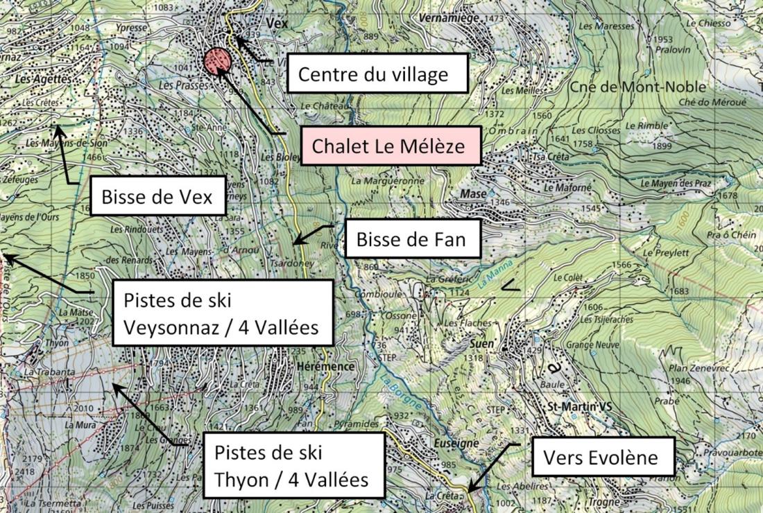 Construit en 1973, ce ravissant chalet de 4.5 pièces baptisé « Le Mélèze » se situe à la route des Agettes 47 à Vex. Situé à une altitude de 1020m, il bénéficie d’un emplacement idéal : à la fois niché dans un cadre paisible offrant une superbe vue sur la Dent-Blanche, la Maya, les Alpes bernoises tout en étant proche de toutes les commodités (moins de 10 minutes à pied des commerces, restaurants et services, école).