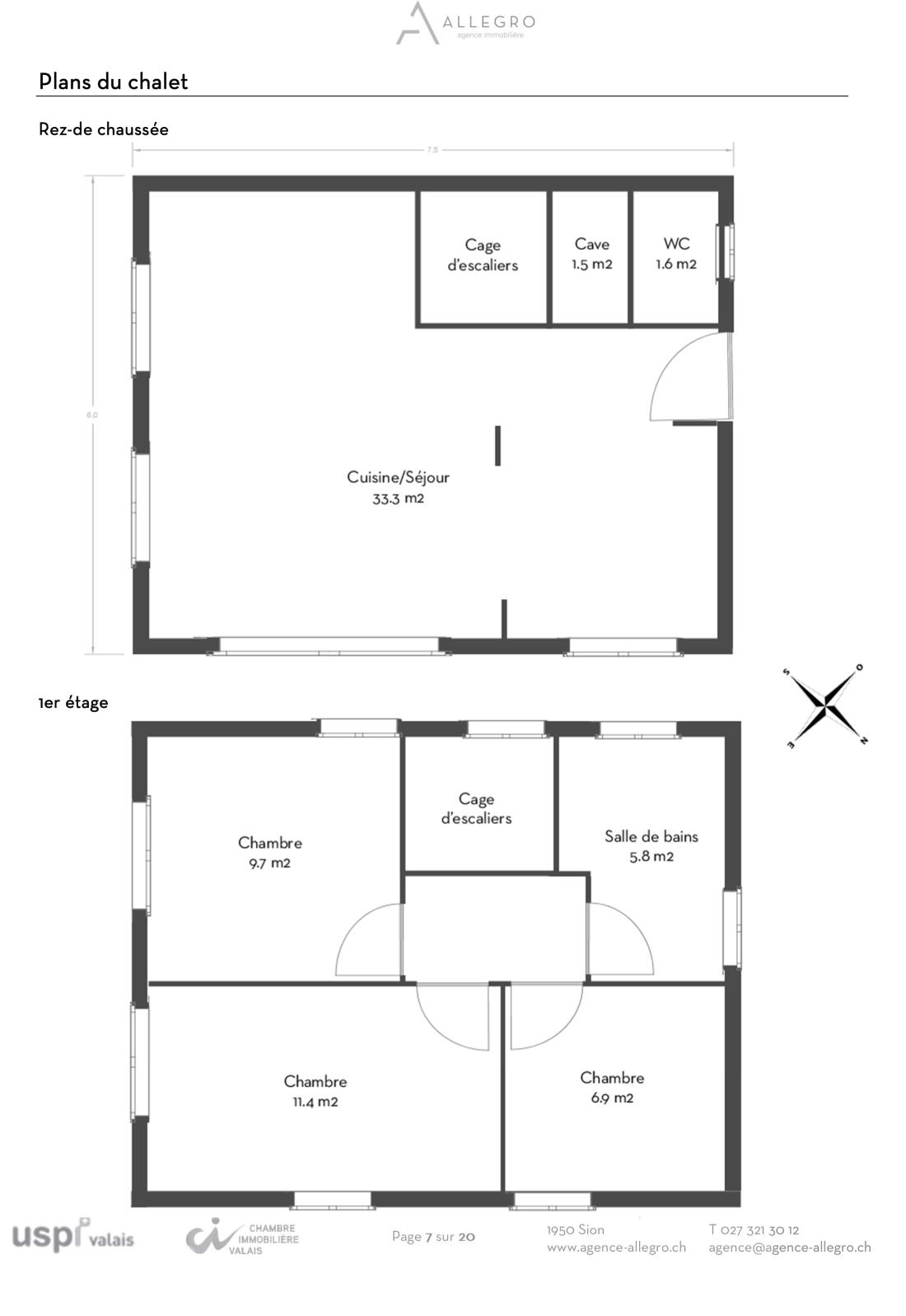 Le volume du chalet s’élève à 255 m3 bâtis (selon norme SIA 416) sur 84 m2 de surface brute habitable et 78.3 m2 de surface habitable nette. Le chalet s’organise de la manière suivante :