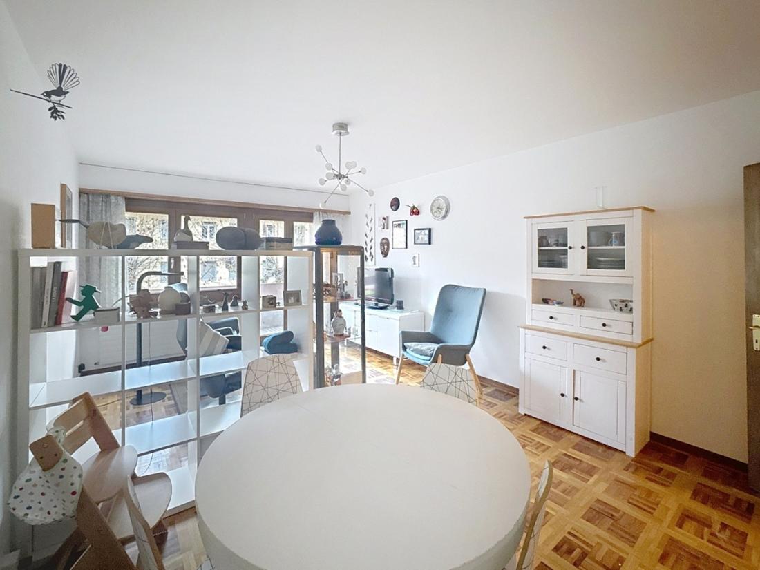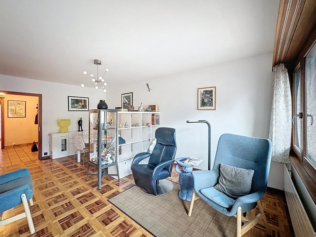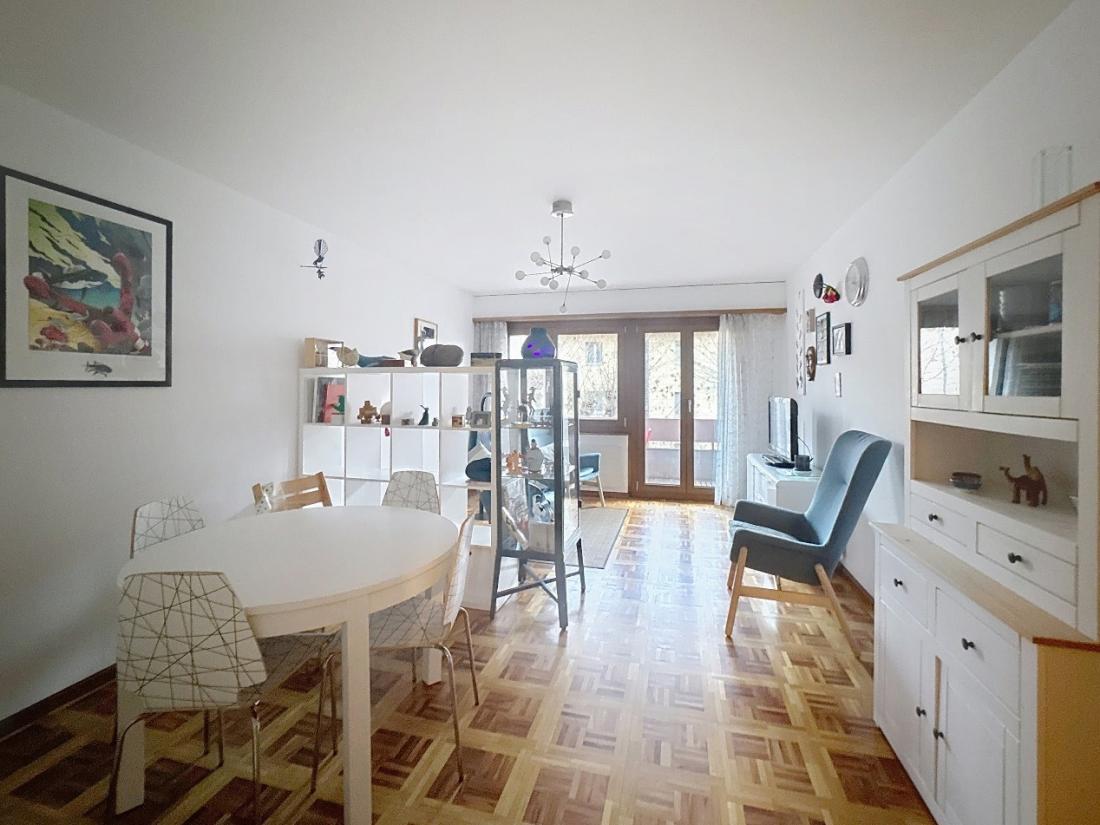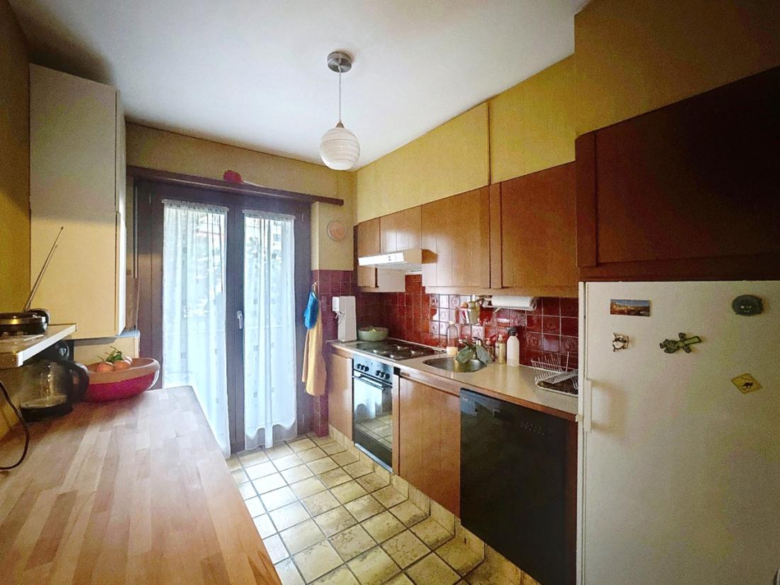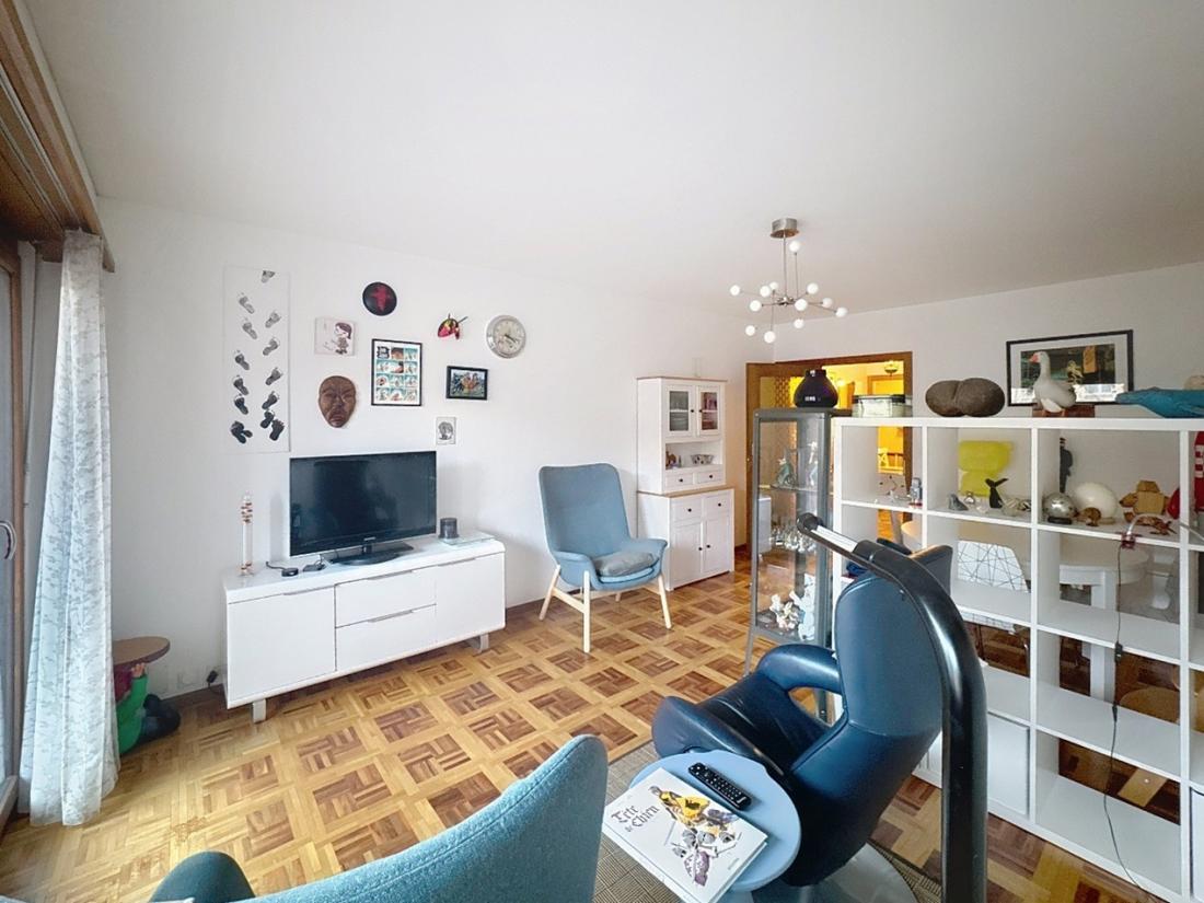Situé en retrait de la route, cet appartement offre un cadre de vie calme dans un environnement verdoyant. La distribution des pièces est bien pensée avec une bonne séparation des espaces, une base idéale pour un projet de remise au goût du jour. Avec ces nombreuses fenêtres, le séjour profite d’un beau dégagement avec peu de vis-à-vis et donne accès au balcon exposé plein sud, parfait pour apprécier les beaux jours. La cuisine séparée, située au nord, bénéficie également d’un petit balcon.