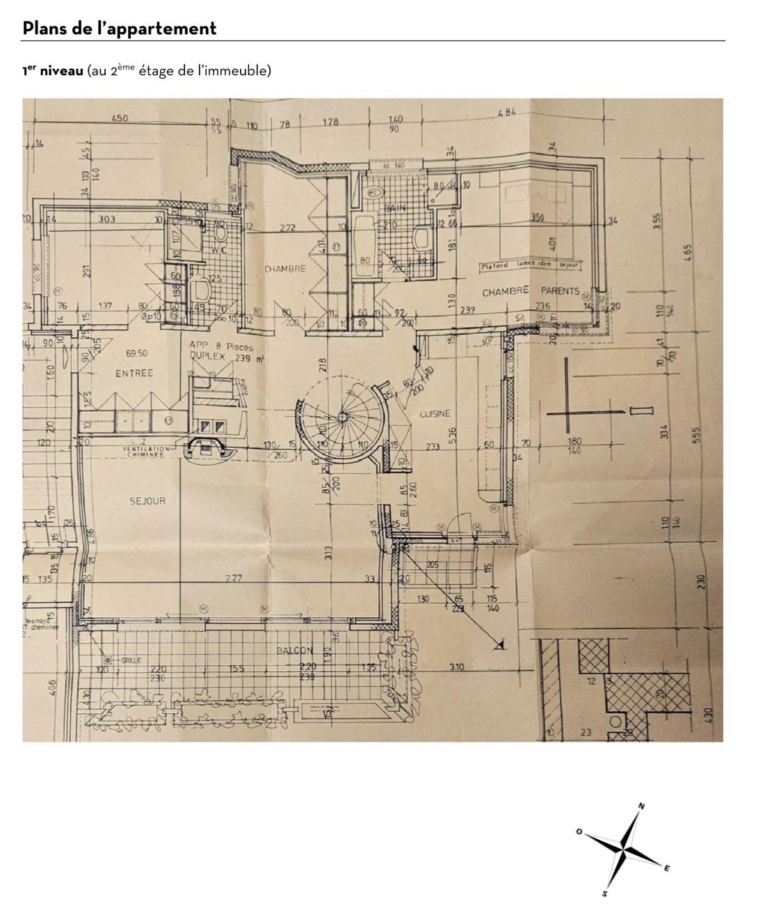 La surface habitable brute s’élève à 239 m2, à laquelle s’ajoutent deux balcons de respectivement 15.7 m2 et2.3 m2 (total de la surface de vente pondérée avec les 1/2 balcons = 248 m2). L’appartement s’organise de la manière suivante :