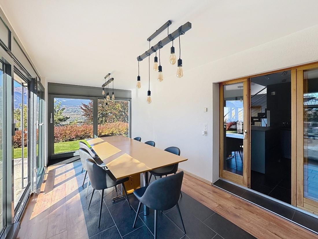 Bénéficiant d’un environnement très calme et privatif, sans aucun vis-à-vis, la villa offre une vue imprenable sur les Alpes bernoises et la plaine du Rhône. Son jardin plat de 120 m2, soigneusement aménagé, comprend un magnifique espace terrasse couvert ainsi qu’une terrasse dallée, permettant de profiter pleinement des extérieurs et de la nature environnante.