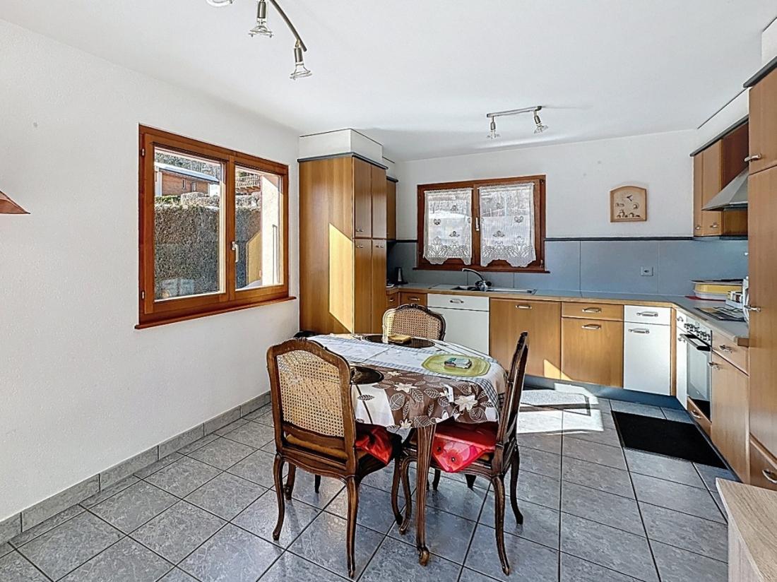Soigneusement entretenu, ce chalet ne nécessite aucune rénovation, bien qu’il puisse aisément être remis au goût du jour selon les envies des futurs propriétaires. Bénéficiant d’un ensoleillement optimal, il séduit par ses volumes généreux et son magnifique dégagement offrant une vue imprenable sur les Alpes valaisannes.